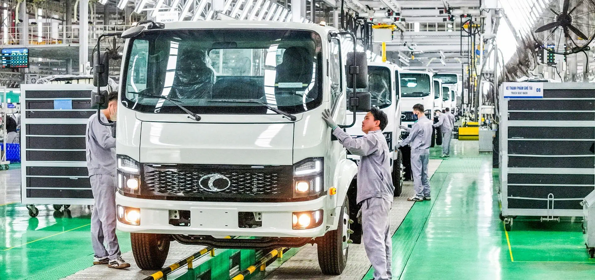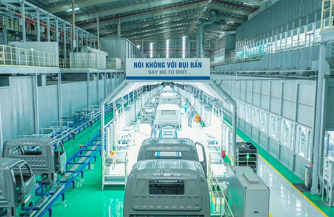 Dây chuyền lắp ráp được thiết kế chuyên biệt cho từng dòng xe: dây chuyền lắp ráp xe tải nhẹ, xe tải nặng và xe tải van. Các dây chuyền được trang bị đầy đủ hệ thống máy móc, thiết bị hiện đại hỗ trợ quá trình lắp ráp. Đặc biệt, súng siết lực tự động giúp kiểm soát chặt chẽ lực siết của từng bulong, đai ốc, đảm bảo độ chính xác và nâng cao chất lượng lắp ráp cho từng mẫu xe.